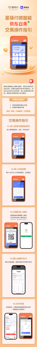 星驿付微智能-上线支持京东白条|花呗分期支付功能 发布时间:2025-07-06 分类: 问题解答 阅读:23 各位合作伙伴,星驿付微智能京东白条功能重磅上线 京东白条交易额度为单笔5万,单日30万。 交易费率:1000以下按扫码费率,1000以上按刷卡费率,仅支持分期交易 请合作伙伴们知悉,欢迎体验。 注:设备开机后将自动升级,完成升级后可操作京东白条交易 本文由星驿付pos机原创内容转载请标明出: 星驿付微智能-上线支持京东白条|花呗分期支付功能 上一篇 星驿付POS机注销方法流程 下一篇 星驿付pos机,一款专为商家和消费者打造的智能支付设备